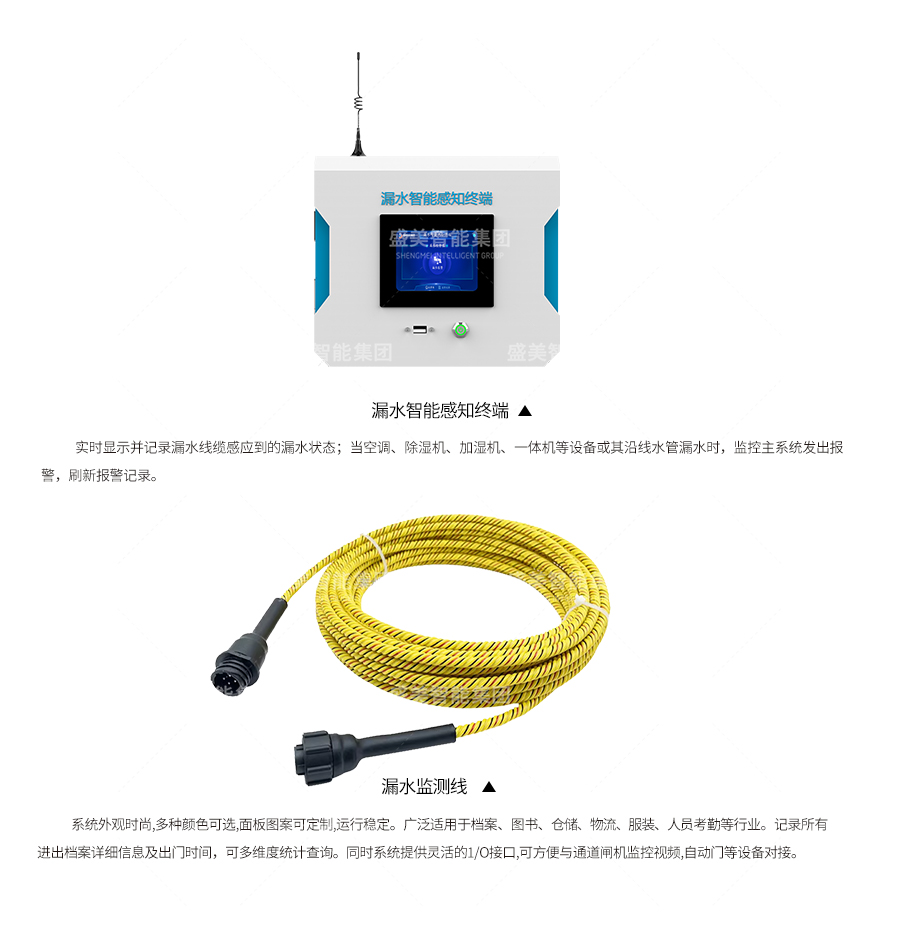 庫房外窗由于密封條随着使用(yòng)時間而逐漸出現老化密封不嚴等問題,極易在夏季遇到強降雨時出現漏水現象,從而對檔案存放産(chǎn)生損害。北方冬季氣溫低,庫房多(duō)配有(yǒu)暖氣管道及暖氣片等,随時間材質(zhì)老化或接口不嚴密等原因,可(kě)能(néng)會出現縫隙,如果出現漏水會對檔案産(chǎn)生毀滅性的損害。因此在暖氣管道及暖氣片等部位加裝(zhuāng)漏水檢測繩,出現漏水時及時檢測報警。